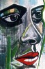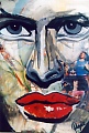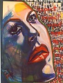 Schilderen is voor me de manier om me creatief uit te drukken, alhoewel het opbouwen van installaties ook een spannende manier is om creatief te zijn. Alsook mail- art, is een boeiende manier om in contact te zijn met creatieve geesten. Wat mijn schilderijen betreft, werk ik voornamelijk op een vrij groot formaat, vooral omdat ik dan een grotere vrijheid ervaar. Het thema wat me het meest bekoord is " de vrouw", de kracht, het spirituele, de macht, het wezen, ... Het zijn echter geen portretten, maar metaforen, waarbij ik veel gezichten gebruik, maar het zou dus ook totaal iets anders kunnen zijn. De kracht van de kleur wordt nog steeds wat onderkend, kleuren beinvloeden sterk onze gesteldheid, vandaar dat ik heel kleurrijk werk, zeldzaam zijn nog steeds het aantal schilders die kleur durven te gebruiken, meestal blijft men bij de (veilige?) grijs/zwarten. Ik probeer bij de toeschouwer een positieve kracht aan te spreken, zodat er een voortdurende opbouwende interactie blijft bestaan tussen het werk en de schouwer (dat is toch iedere kunstenaar zijn ultieme doel). Het schilderen in combinatie met collagetechnieken ( foto's, papiertjes, veertjes, zand),..., bieden een extra dimensie aan het platte vlak en geven een andere sfeer weer. Ook tekst komt meermaals voor in mijn werken, waarbij ieder voor zich er een betekenis kan aan geven. Herhaling van woorden (refereert naar het gebruik van mantra's), die een bepaalde ritmiek aan het werk geven in harmonie met het beeld en de kleuren. |